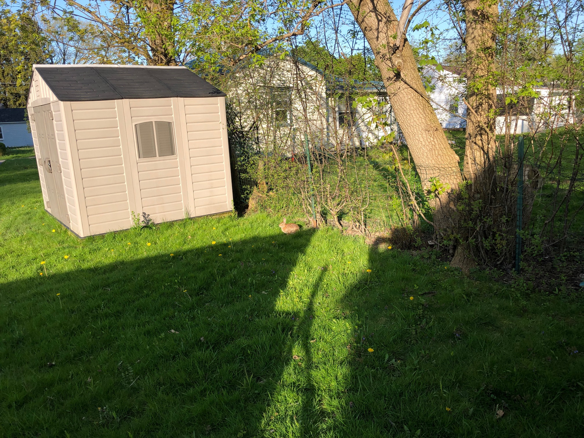 While appreciating a safe barbecue in our great friend and neighbor Georgia’s backyard, I spotted a rabbit in an adjacent yard.
