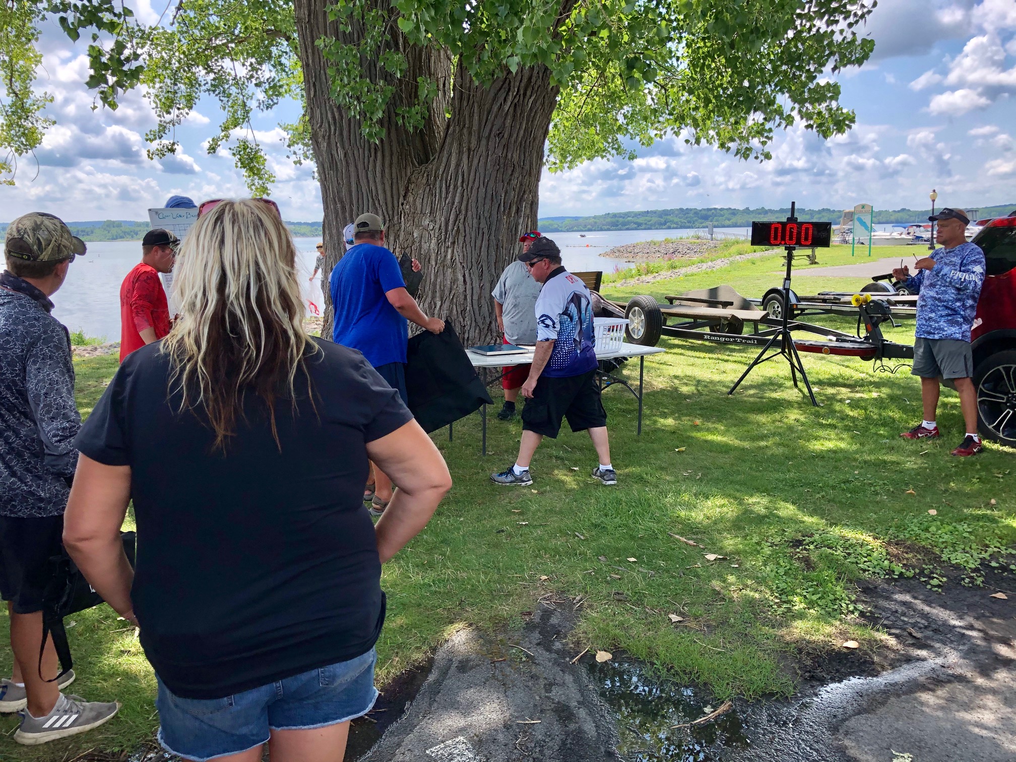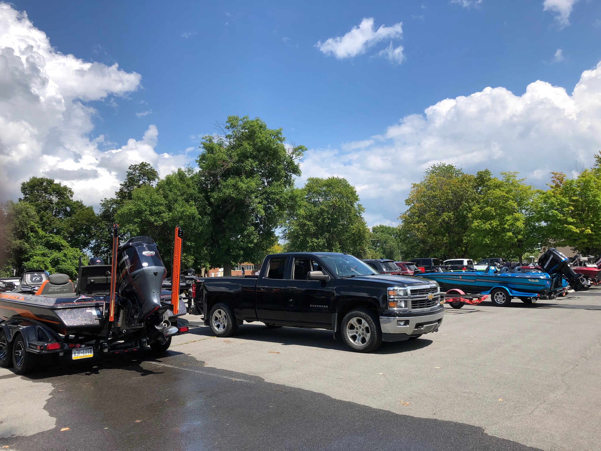 Yes, red digital numbers indeed caught my eye. I asked. We had come upon a bass fishing tournament.