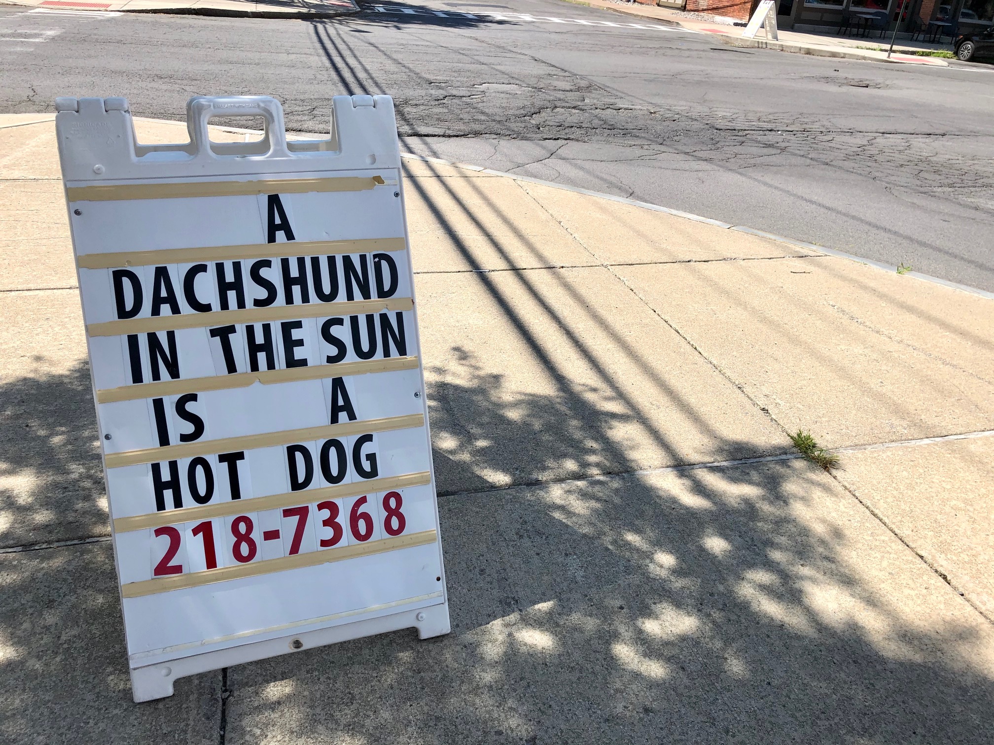 The recent return of the pun signs at the corner in front of the pet store.