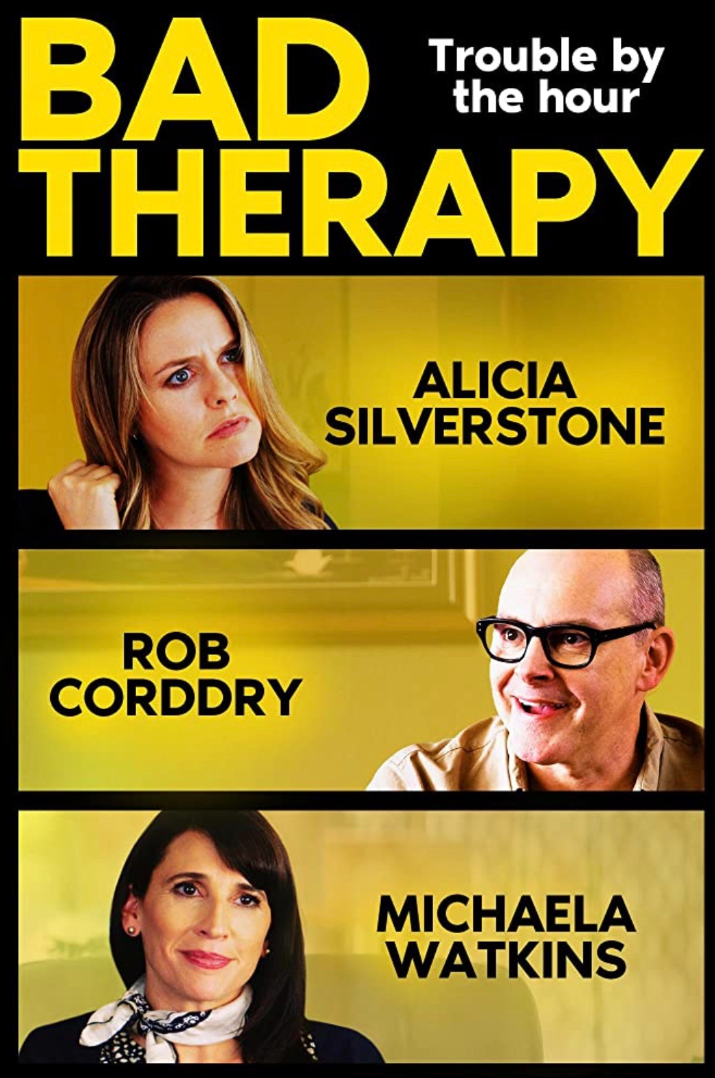 <em>Bad Therapy</em> popped up on the free digital service I receive through my library card. The poster features a face from a favorite movie past and a coupling from a new favorite TV show. Alicia Silverstone used to be a <em>Clueless</em> teen in the wayback. Michaela Watkins and Rob Corddry play a married couple in the satisfying CBS sitcom <em>The Unicorn</em>.