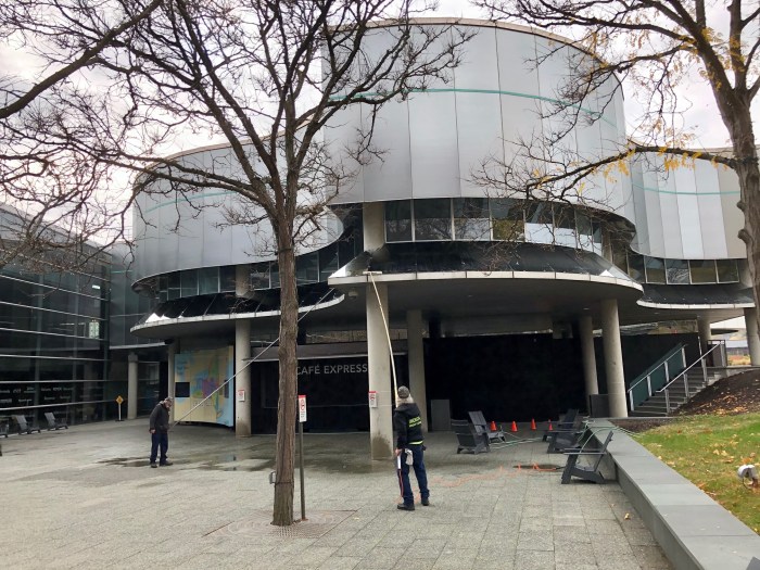 Before we entered the building, I noticed they had workers cleaning the exterior glass. Perfect, I thought.