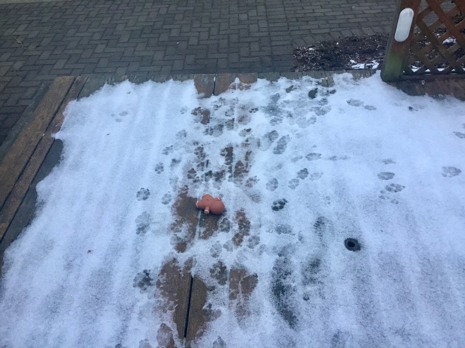 She does play with it after I bring it back in, but she seems to know it will withstand the winter weather as well, Beth!