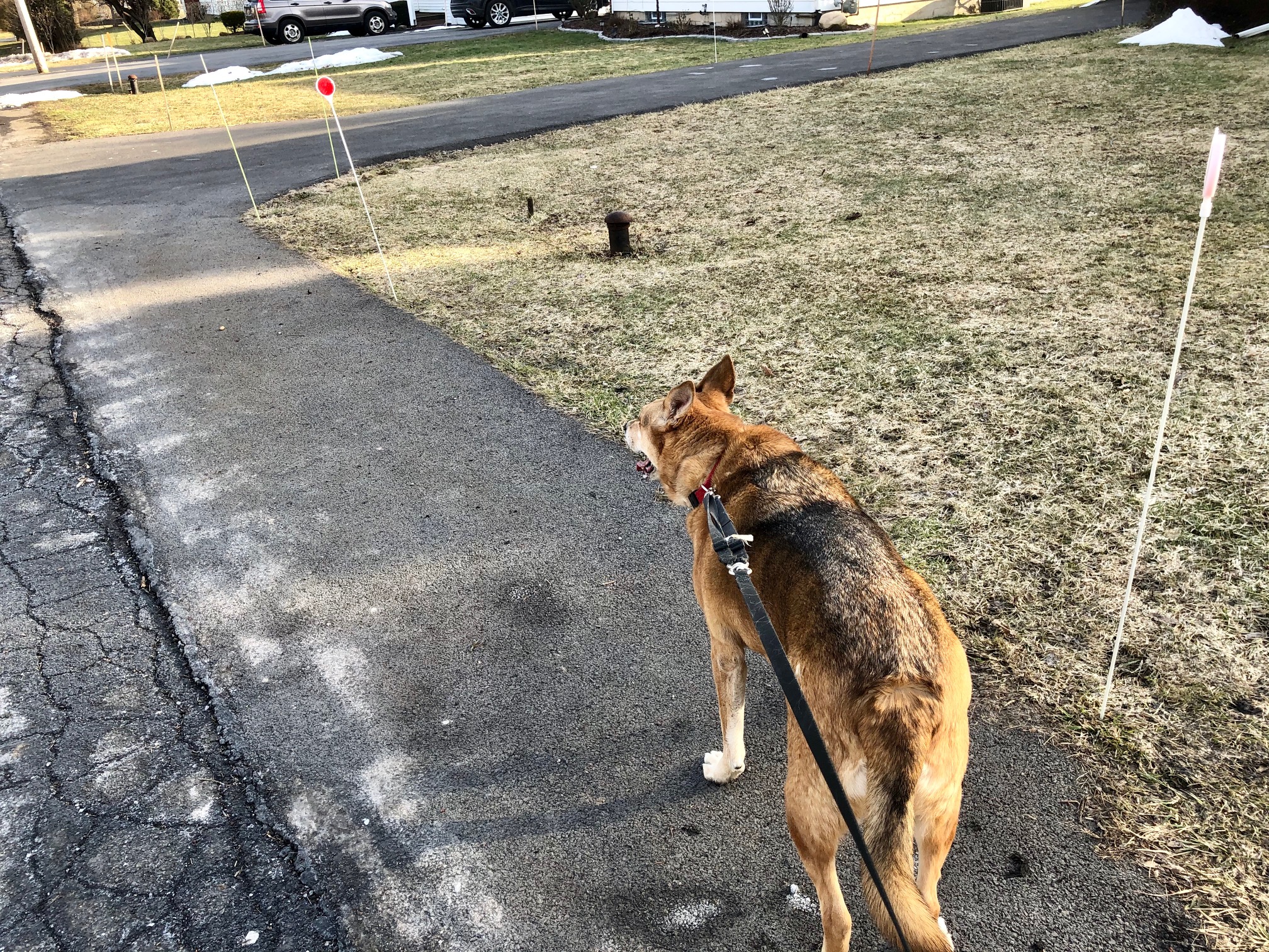 Cherished rescue mutt Ellie B aka Dogamous Pyle surely seems happy when its 62 degrees (F) when I get home from my library job and ask her if she’d like to take a Wednesday afternoon walk around the block in what’s not yet quite mid-March.