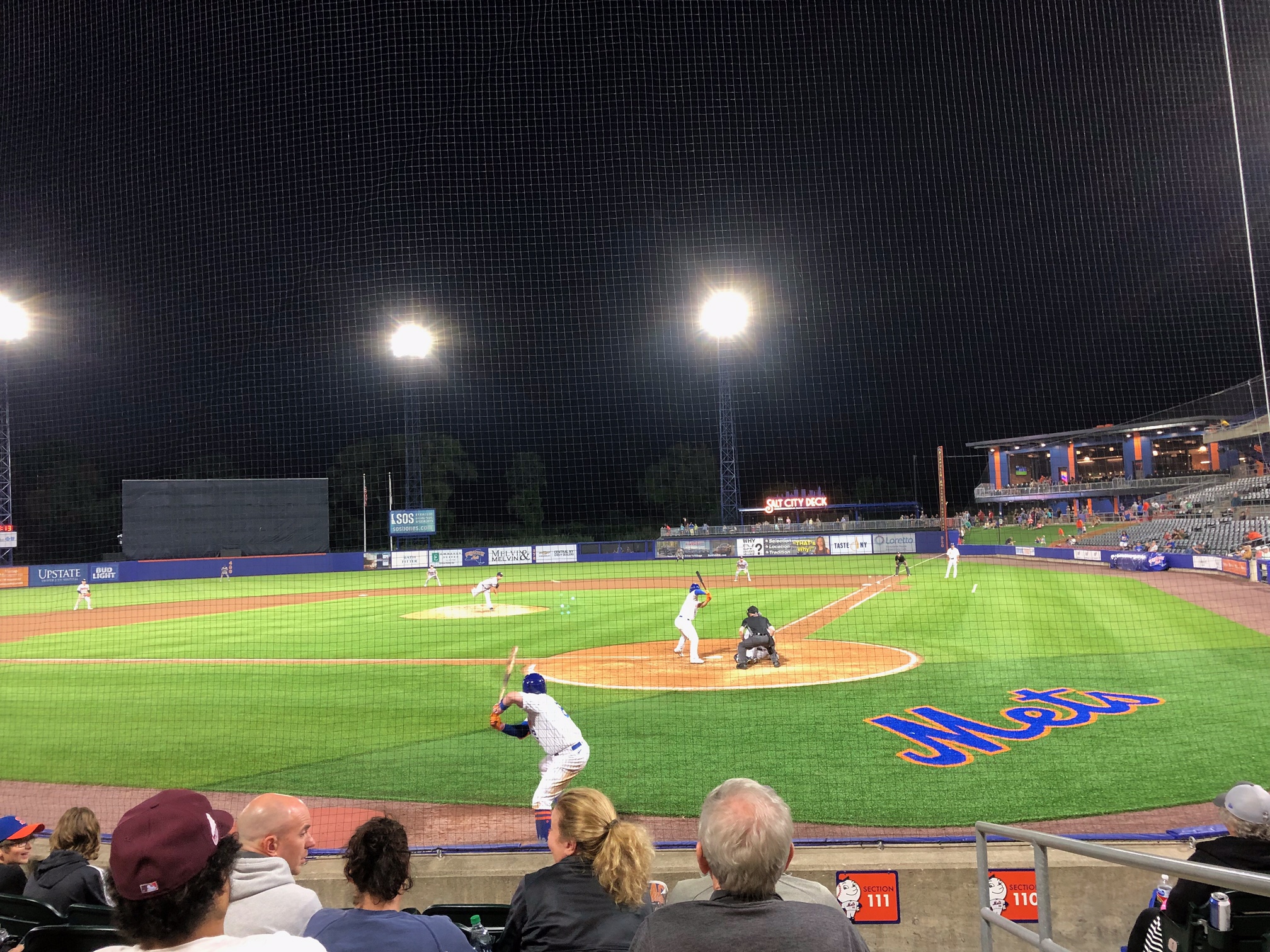 Our behind-the-plate seats seemed even cooler once night fell over NBT Bank Stadium.