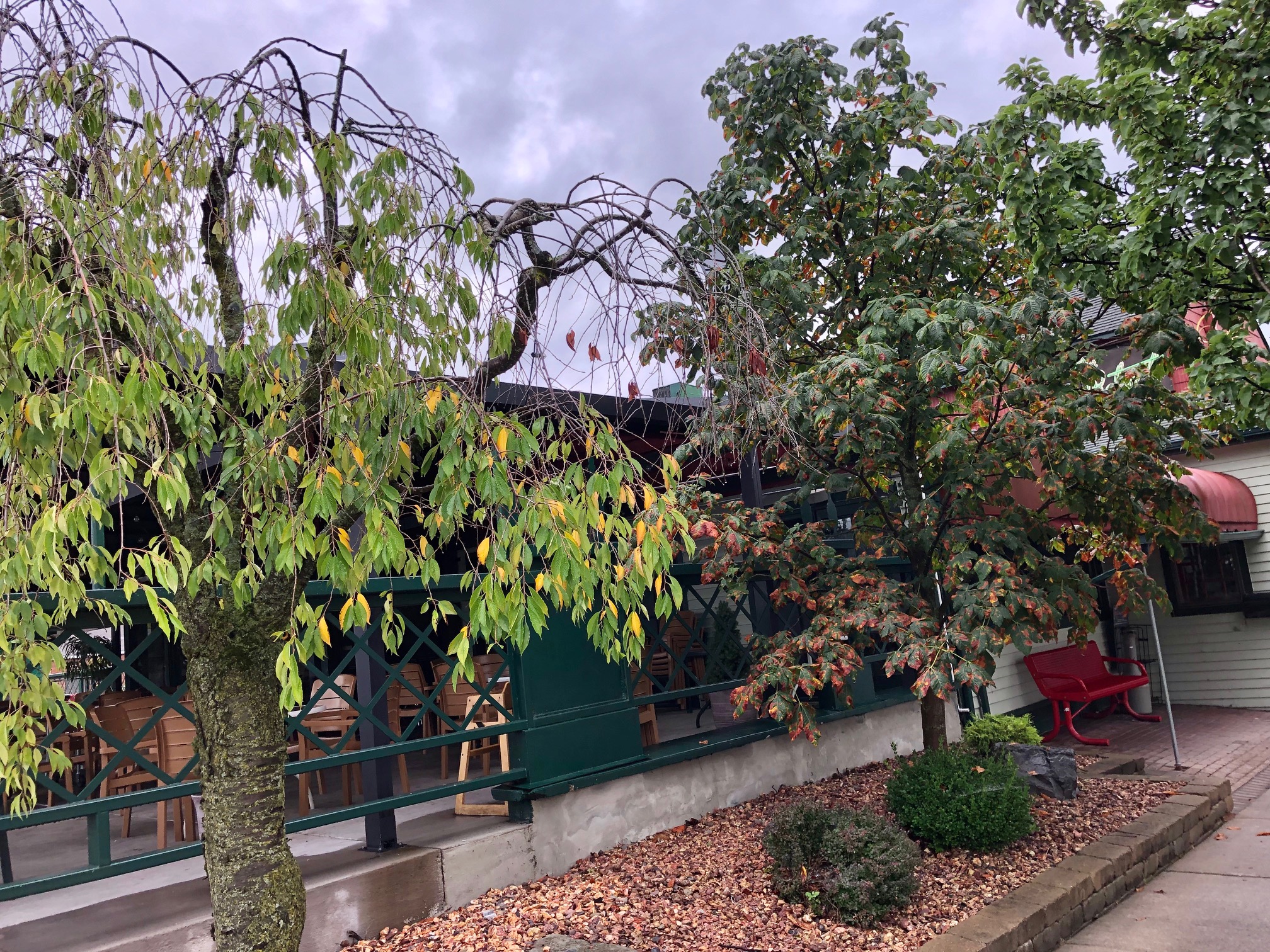 Two trees outside the Retreat had leaves that were sporting color change.