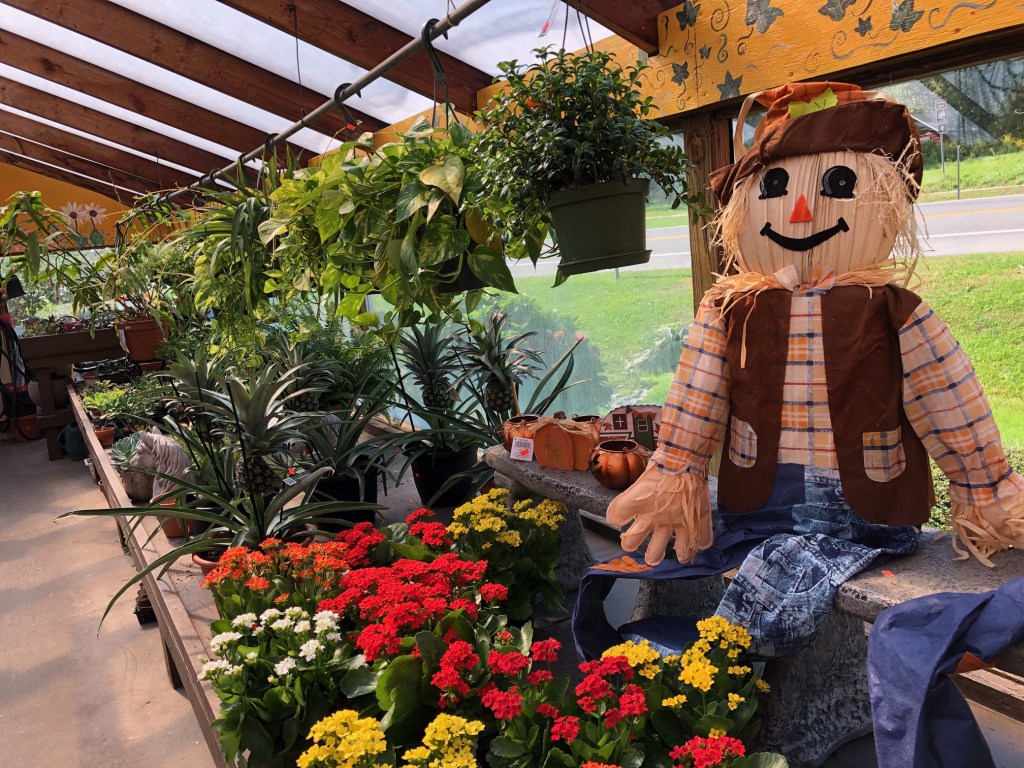 And the scarecrow stands guard over the plants.
