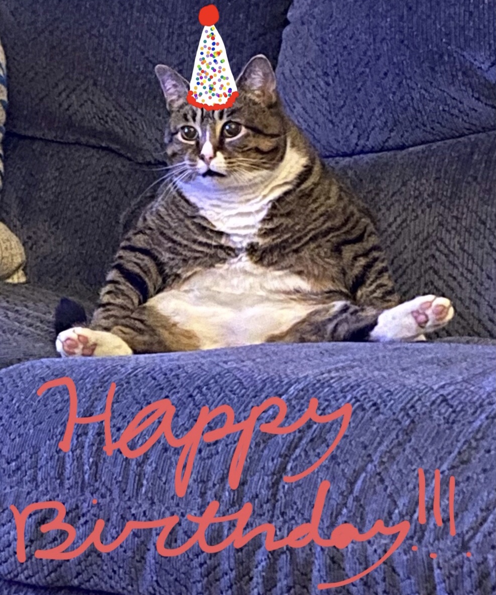 Ava doesn’t look worse for wear. She is probably used to posing for birthdays and other important events and maybe gets a treat/bribe for doing so.