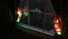 Terrific daughter Elisabeth and son-in-law-to-be George know how my dear wife Karen works hard to make the backyard gardens so special. This gift of solar-powered flower lights will look delightful among the blooms of spring and summer, we are certain after Karen hung them for the rest of winter at the flanks of our kitchen…