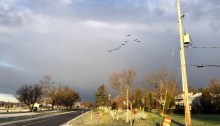 Spotted in our backyard as we march toward 2022: A rose bush greening up with a brush of snow under its growth. This has been one confusing year.