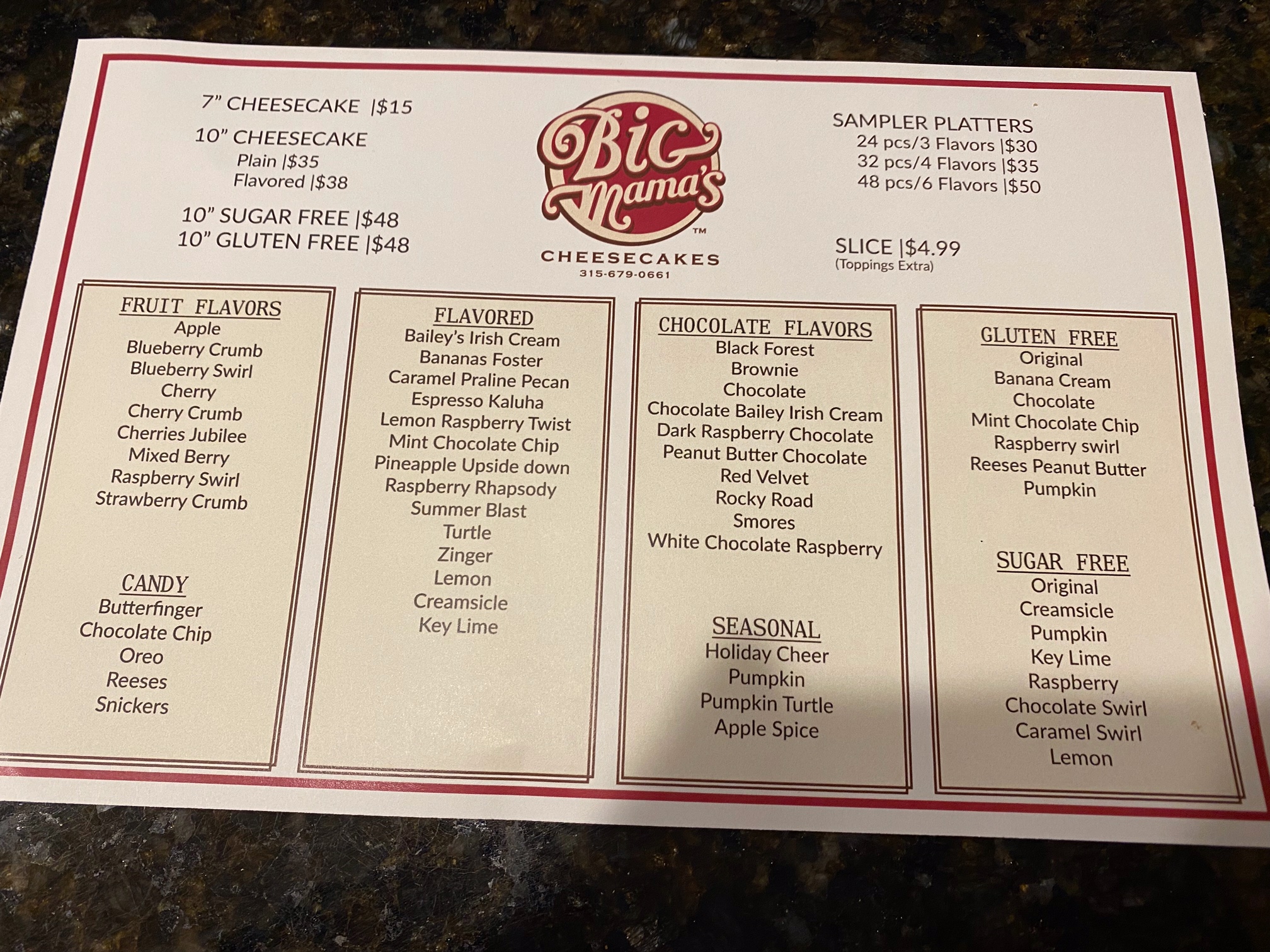 Many, many, many years ago I had a slice of cheescake at Lindy’s on New York City’s 7th Avenue, and it was good, but Big Mama’s sounds like it alone would be worth a trip to Syracuse.