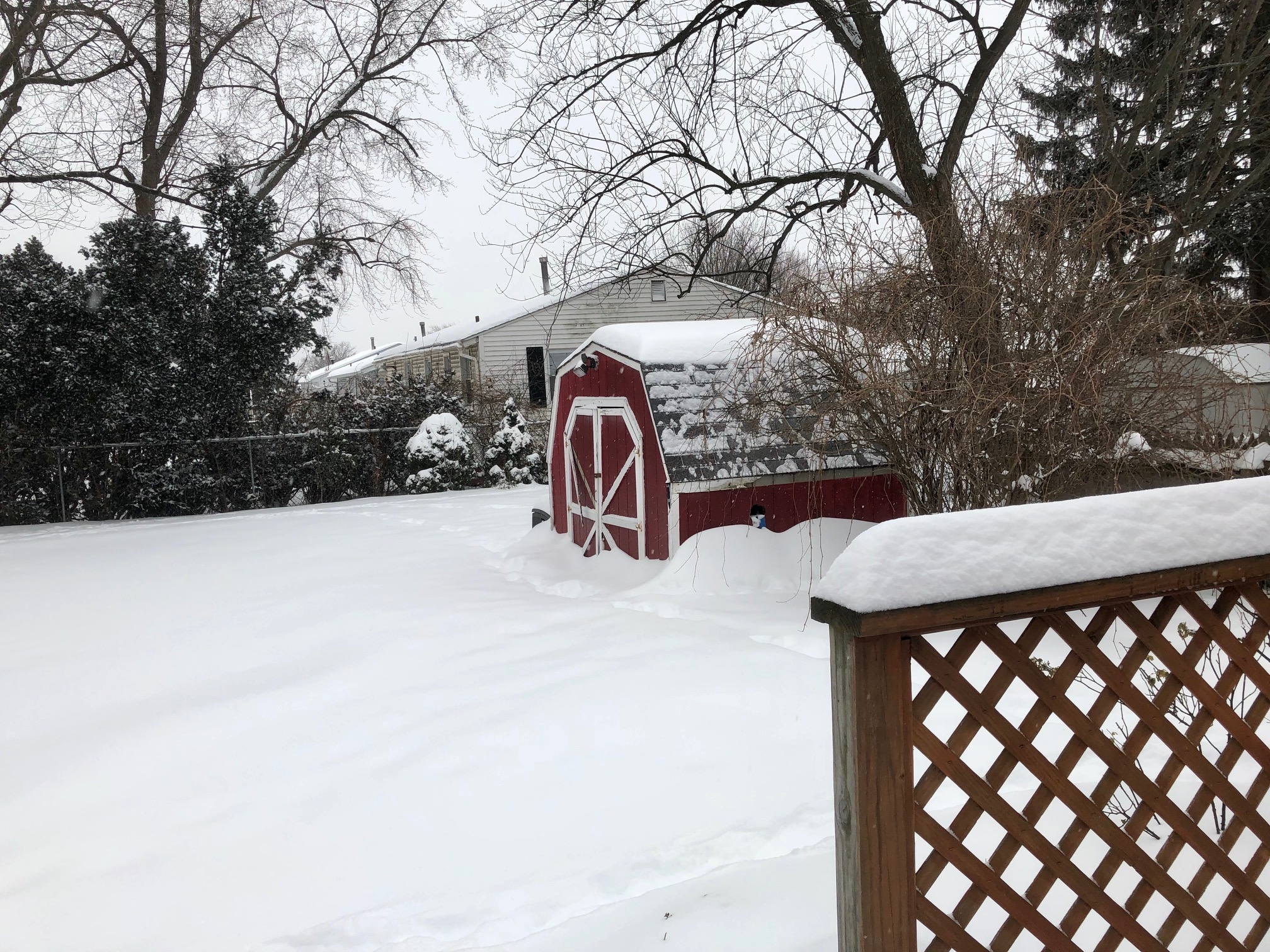 Our cherished rescue mutt had to forge tracks out the back door to do what she must her second time out for the morning.