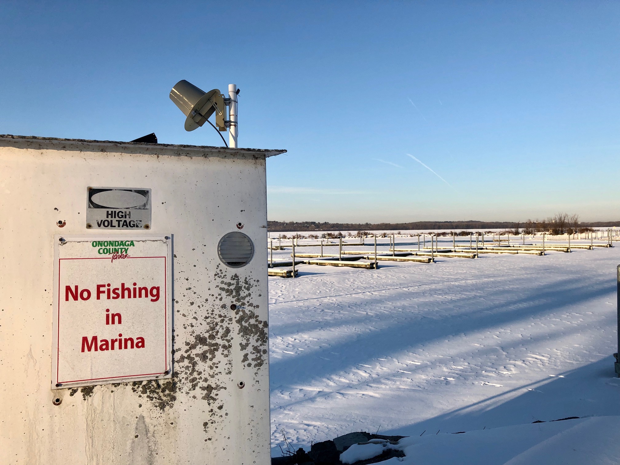 My pre-work stroll in the cold and fallen snow finds plenty of solitiude around the Onondaga Lake Marina.