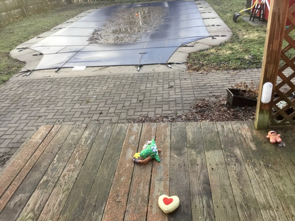 I sure hope she didn’t take it upon herself to push the orange ball out to the middle of the pool cover, though.