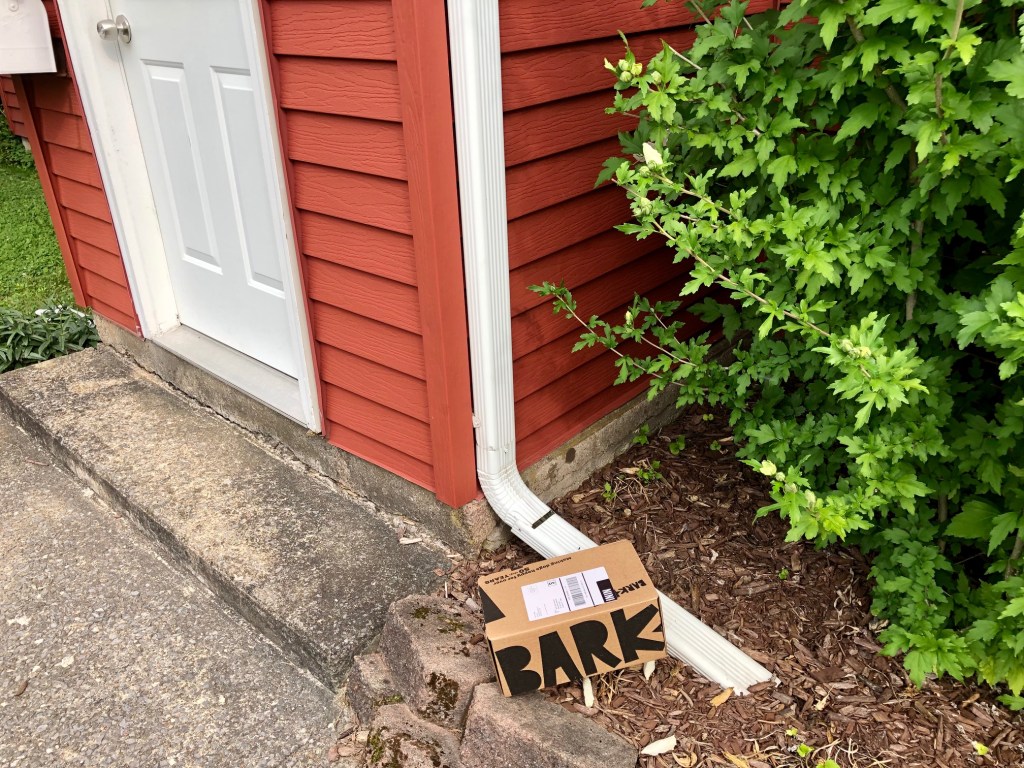 Our cherished rescue mutt’s next Bark Box has arrived.