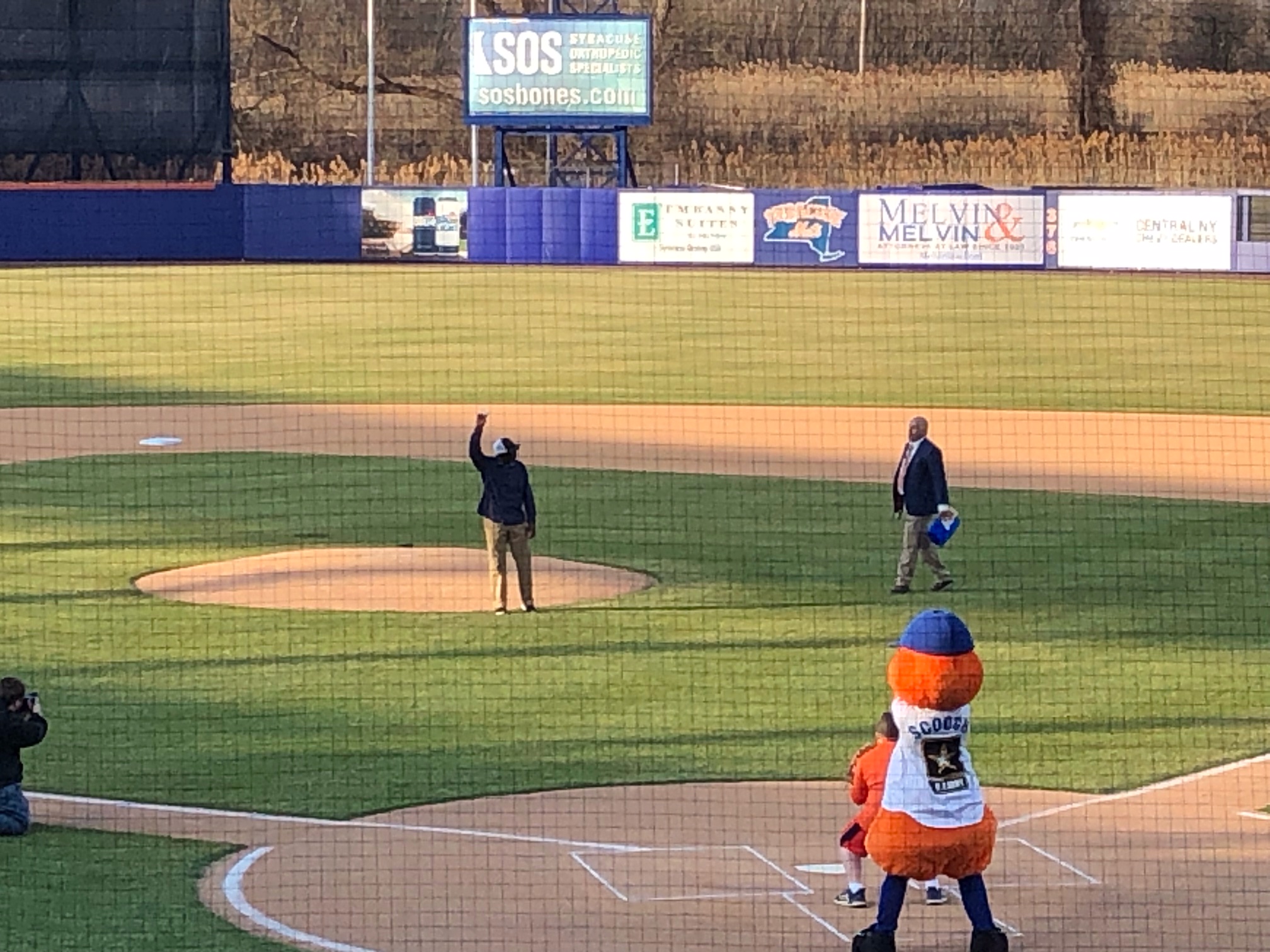 The famous New York Met from the 1986 World Championship squad would sign autographs from 7 to 8 p.m., Syracuse Mets general manager Jason Smorol announced as Mookie delivered one of the two ceremonial first pitches before game time of 6:40 p.m.