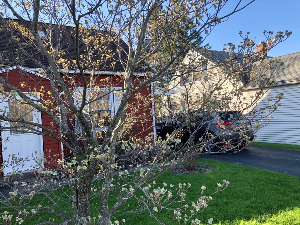 My yearly cheer for our front-yard dogwood blooms has arrived.