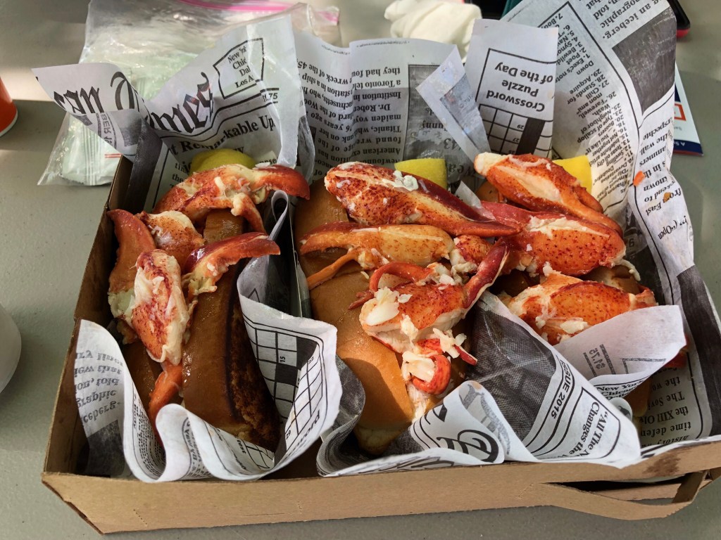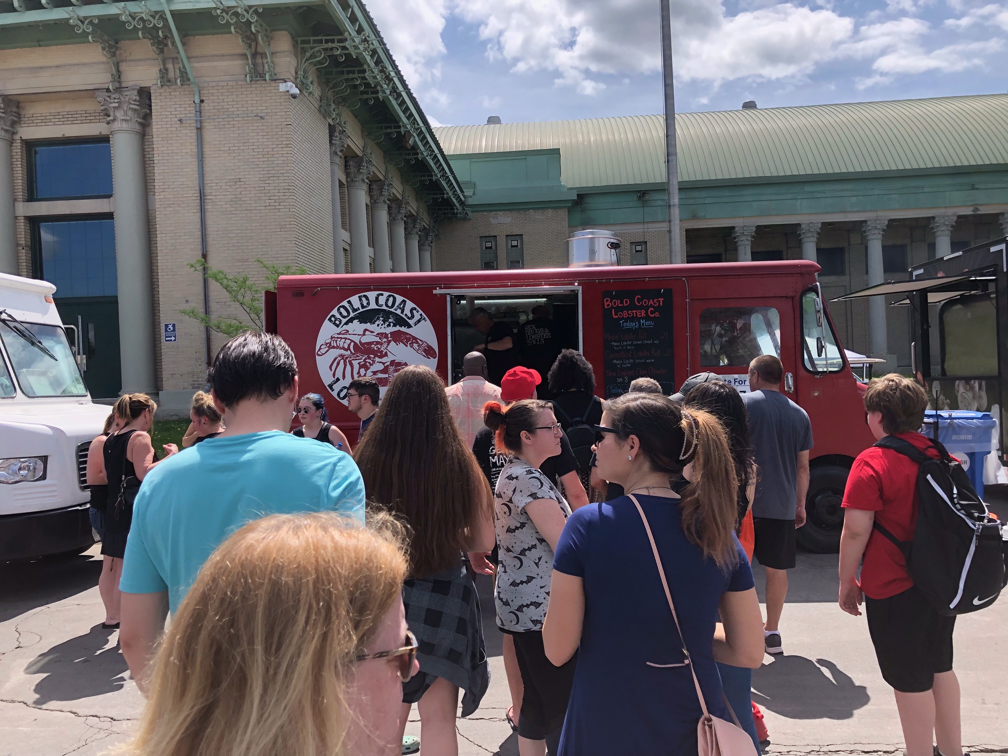 George Three and I immediately jumped on the Bold Coast Lobster truck line, longest of the 50-plus trucks gathered, and bought Connecticut-style lobster rolls for ourselves and George Two.