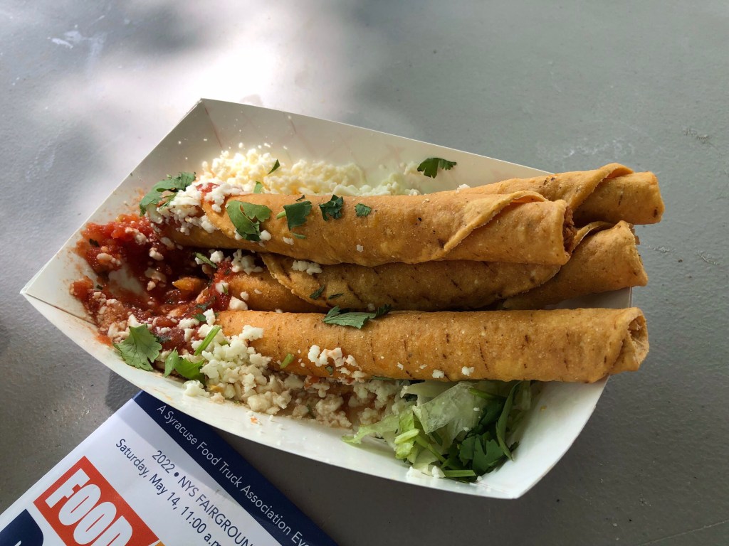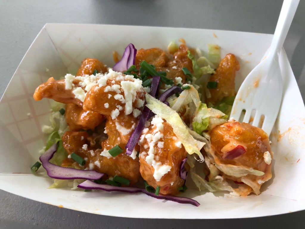 They handed over one plate of chicken tacos and two of bang bang shrimp.
