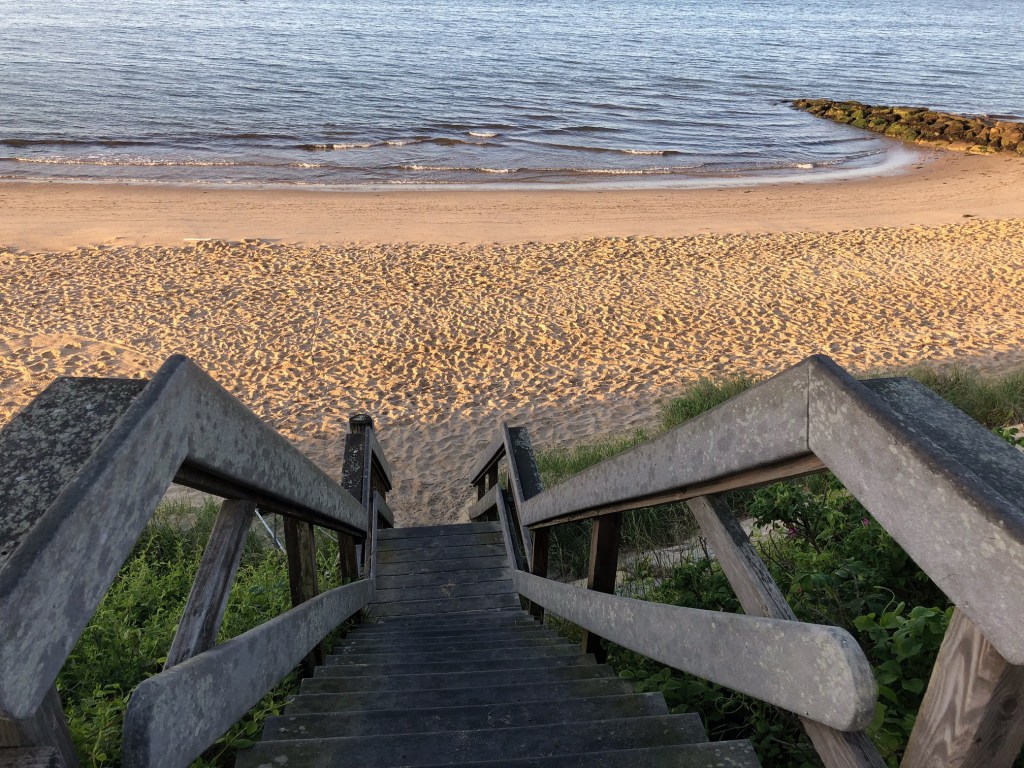 If we made a right from the driveway and entered the second private road, you’d find stairs leading to a private beach.