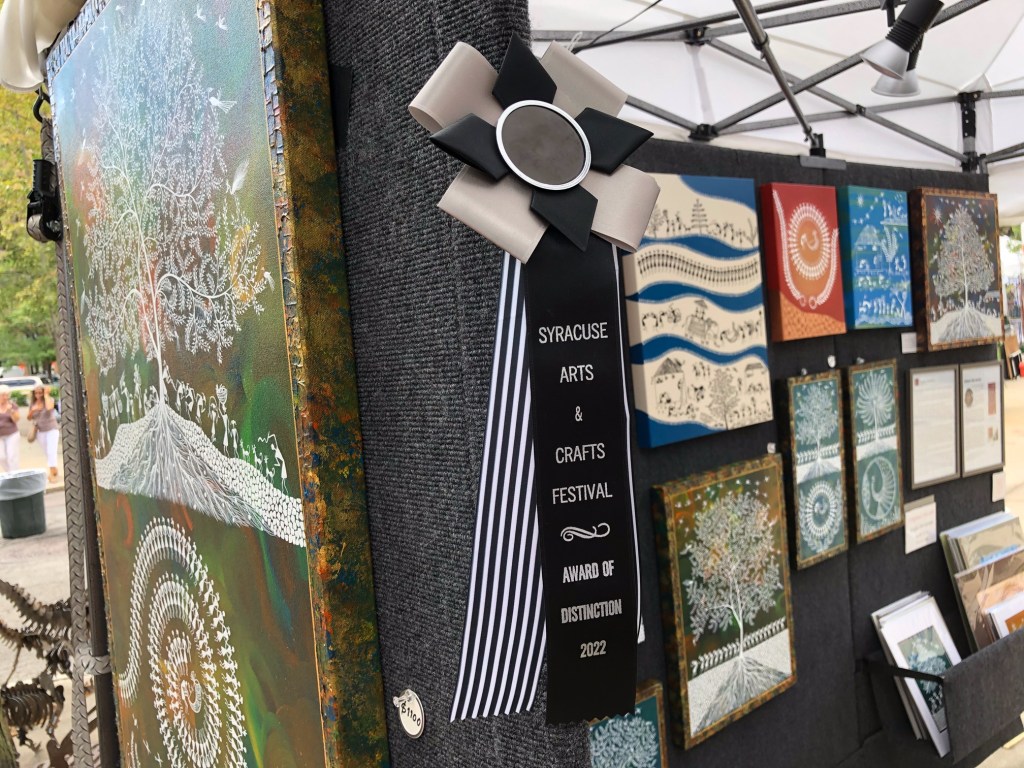 Of all the tents we passed during our Syracuse Arts and Crafts Fest stroll, I spotted just one winner ribbon pinned up.