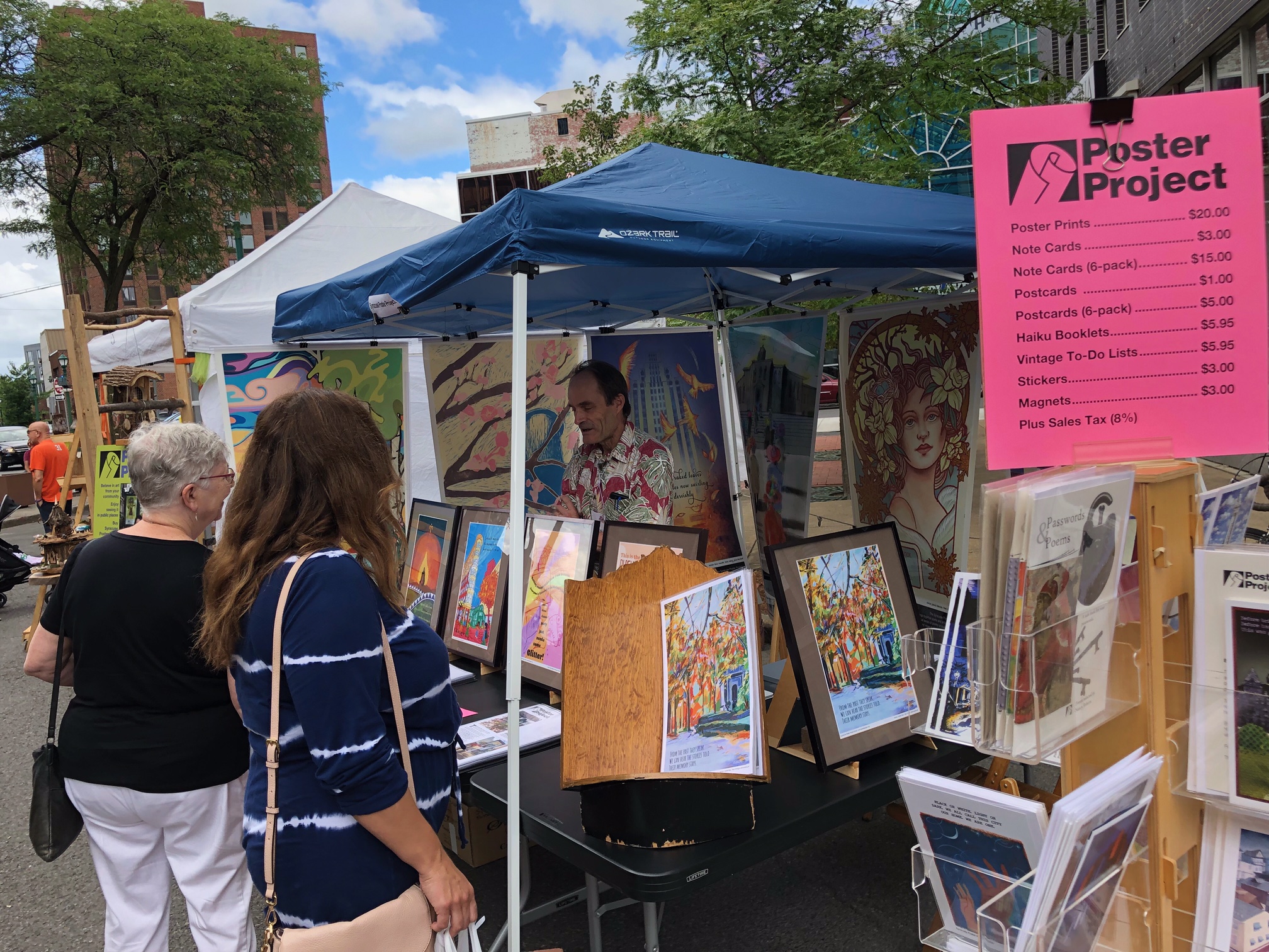 I was glad to see my former colleague at the big daily, Jim Emmons, hard at work in the booth for the Syracuse Poster Project, selling and the work and sharing the vision for the mission he started with determination and enthusiasm in 2001.