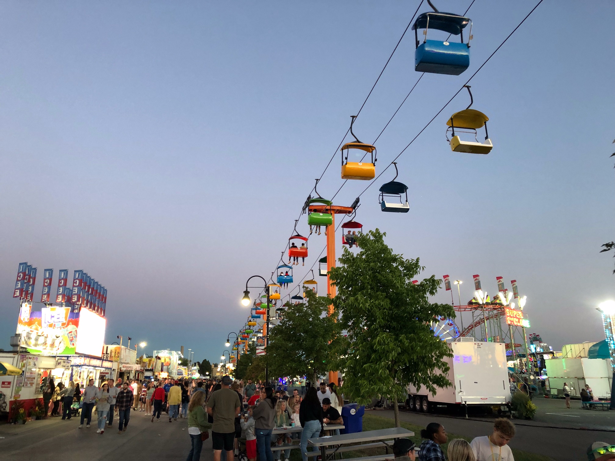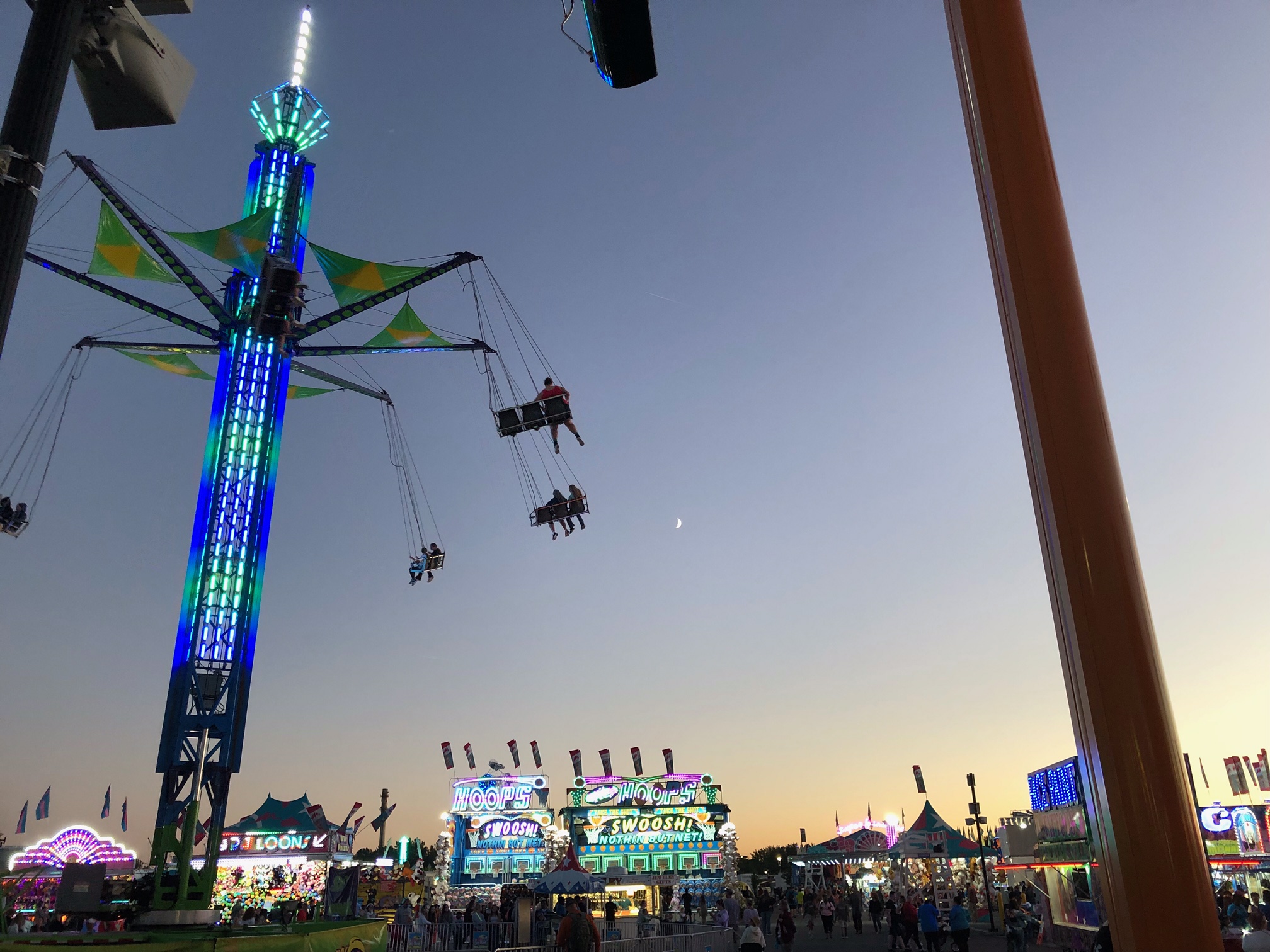 My dear wife Karen and I spied people hanging out up high and waiting for stuff down below as we walked amid the Midway crowds at the New York State Fair.