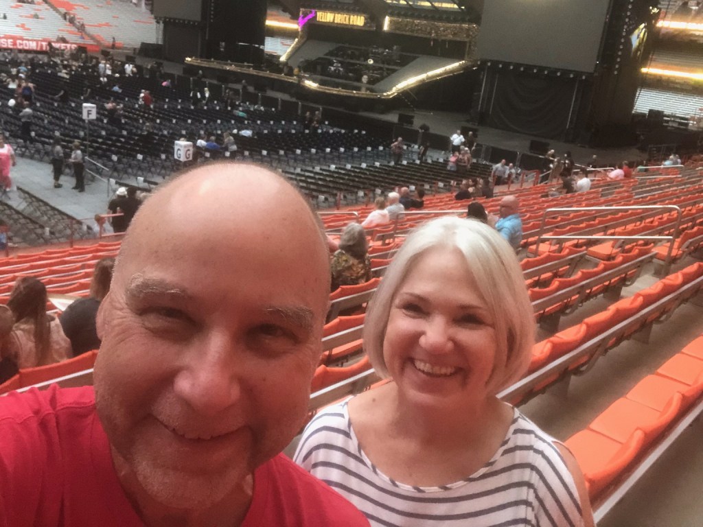 My dear wife Karen and I had waited two years since I purchased the tickets online. They had cost a pretty penny. So we did the day and night up proper, arriving at our designated pass parking lot early to tailgate, riding the shuttle to get to the dome when the gates opened two hours prior to showtime, standing in line so we each could go home with a souvenir farewell shirt.