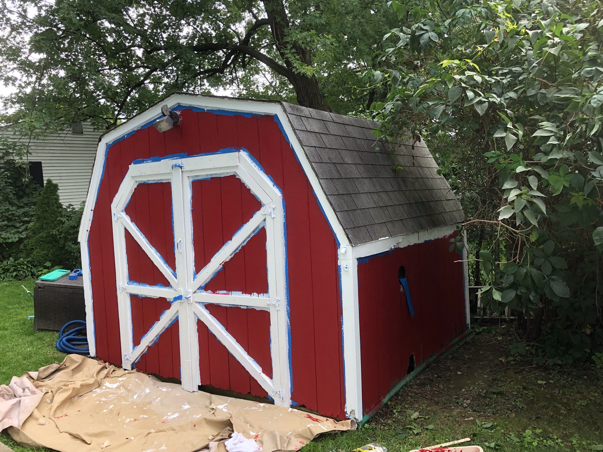Next up went a bright red on, well, the rest of the shed. All four sides.