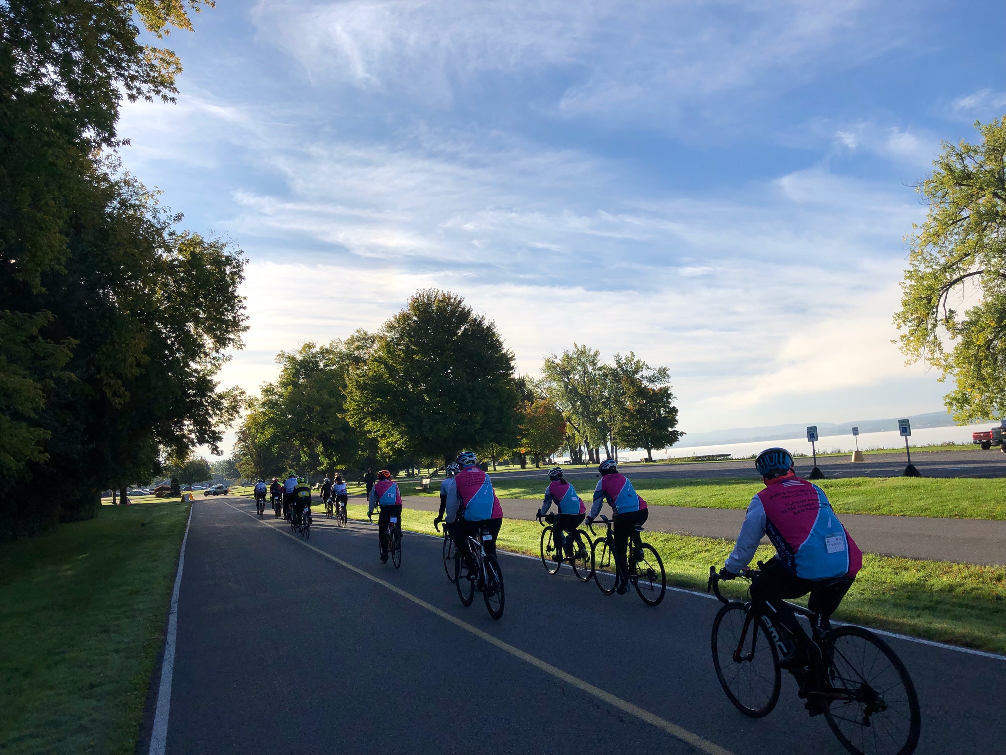 The big pack of bike riders who passed me on my pre-work Onondaga Lake Park stroll were orderly and well-behaved.
