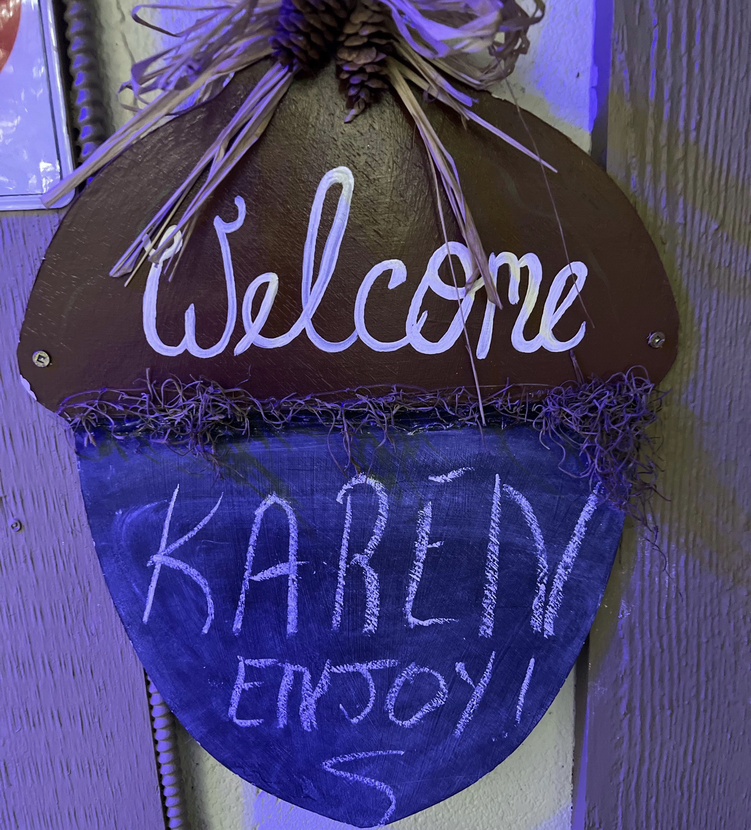 Here’s what hung on the door of the nice place my dear wife found, a room with a private entrance near sister Lynne’s place.