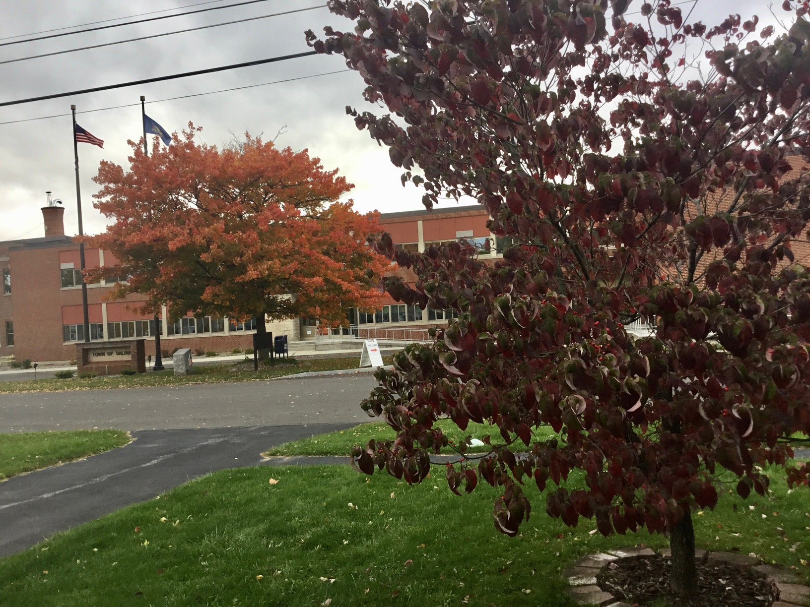 The wide tree at the town offices across the road also has taken on its own so-long shade of red.