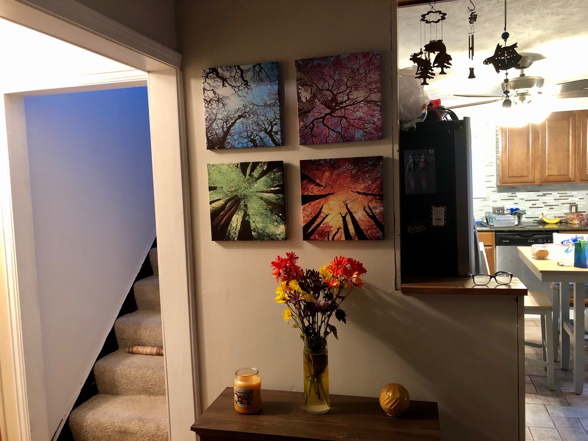 In addition to putting up the towel hanger in the bathroom, the new living room art went up on the wall, too.