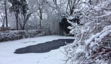 Ready for the family. Does George Three have it in him for a winter fire in his new backyard fire pit, I wondered as I admired his and Elisabeth’s pretty outdoor setting under the white blanket.