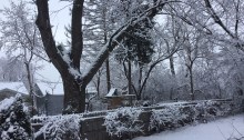 Pretty picture. The snow fell, and I asked my terrific daughter Elisabeth if I took the short drive to take photos of the lovely new house she and George Three have settled into just a mile down the road. She texted back sure. It makes me so happy. Now I can capture nice images here…