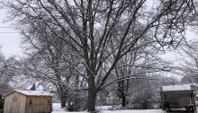 Room to grow. The shed and pavilion at Elisabeth and George’s spread looks great under the white blanket, I decide as I do the dad walkabout. So many good times to come, I imagine.