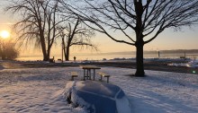 Thank you for a lovely downward arc. I’ve owed you all this scene of the sun saying so long over the winter lake snippet we get at the end of our block’s downhill turn. There you go. I like it.