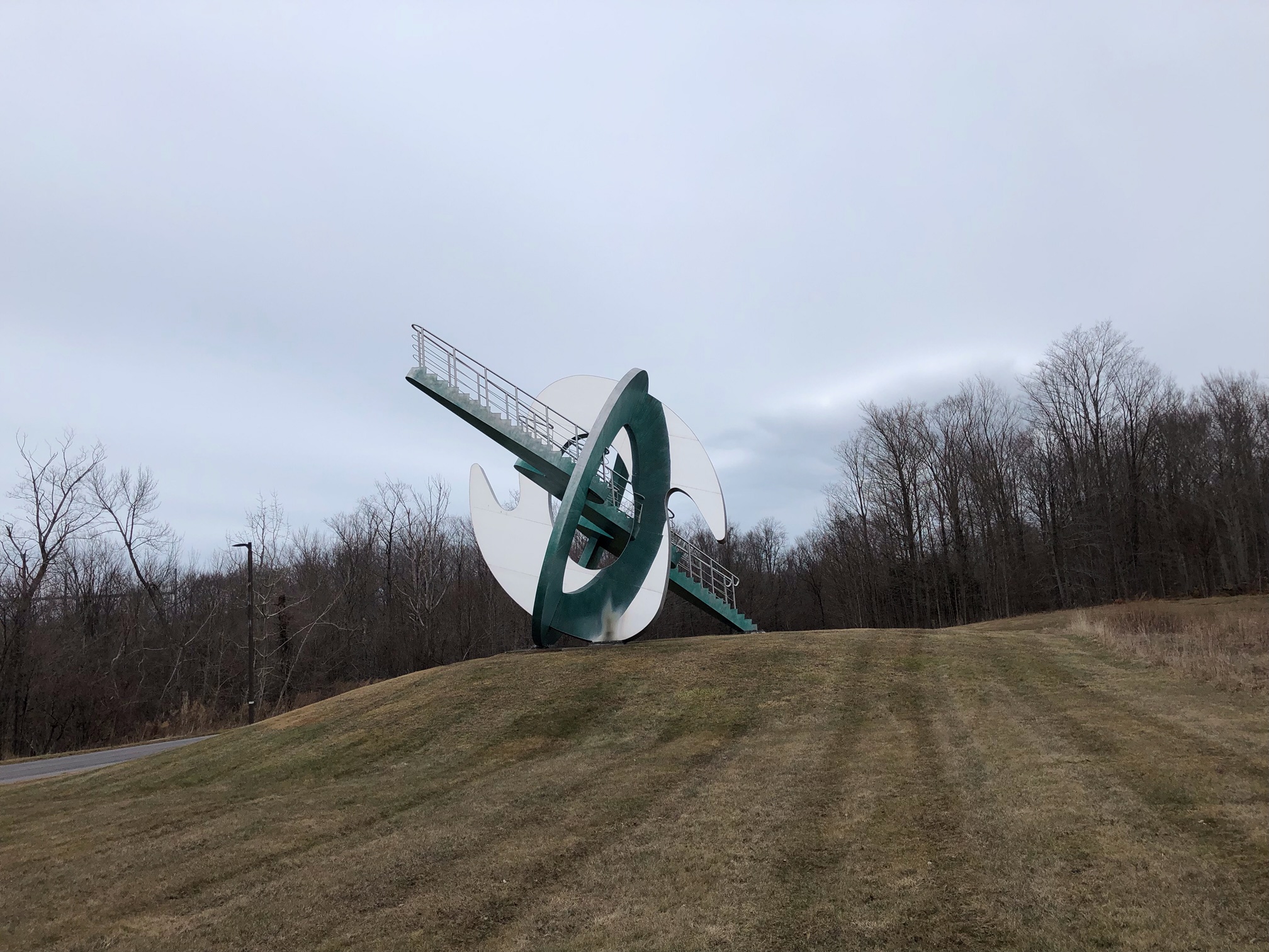 George Two’s original text hook to entice me to this day trip through Oswego was his periodic encounters with a piece that sat quietly on a hill he’d driven past and wondered about throughout the last decade or so.