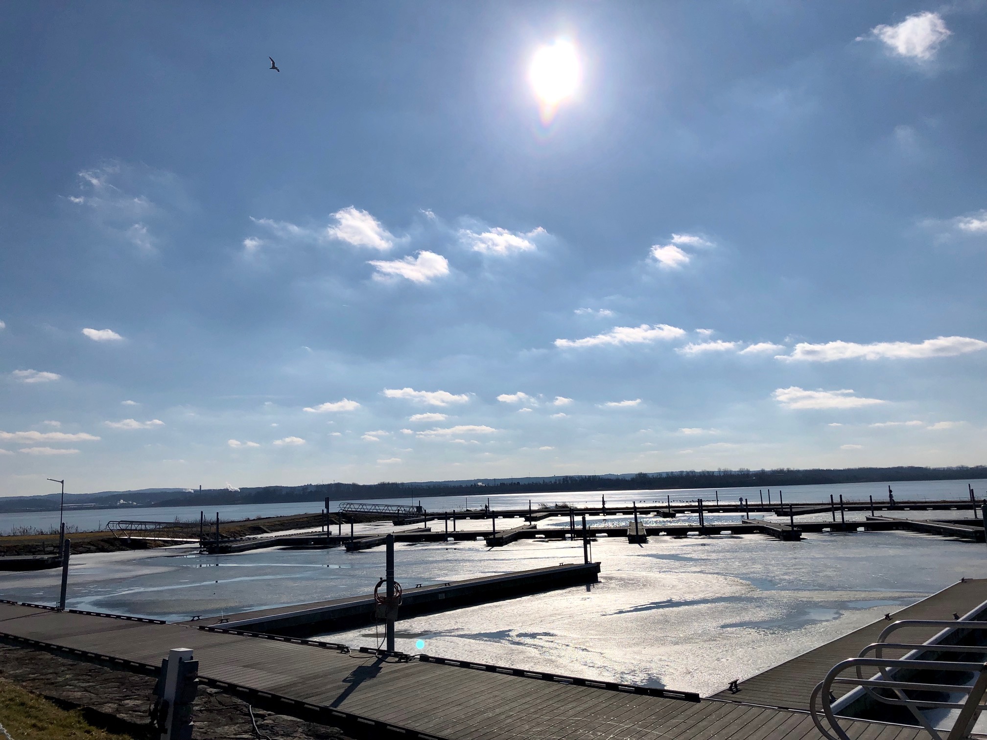 A February walk to the Onondaga Lake Marina can find it quite quiet. The bird’s eye view shows still waters for sure.