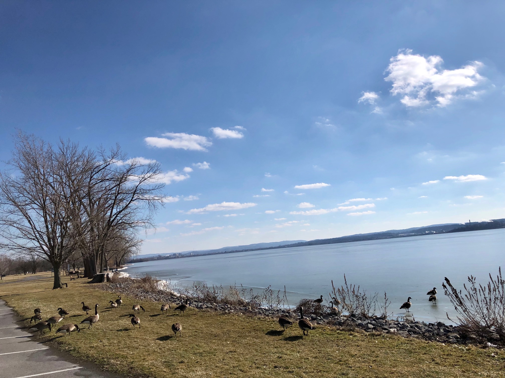 It’s a sign to see the geese gathering on the shores during a recent walk around the lake. Several are ready for the water, yes.