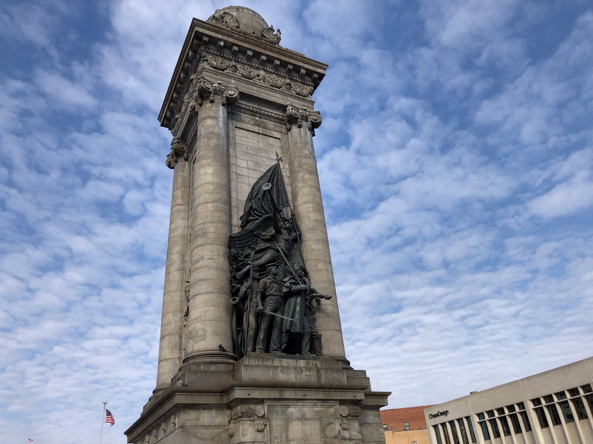 Some retirement business led me to downtown Syracuse last week. I had to haul out the iPhone to capture the still-notable Soldiers and Sailors Monument in Clinton Square against that cotton-candy sky.