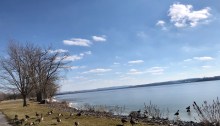 Home of the Dome. On a clear February day, the Syracuse city skyline stands out on the Onondaga Lake horizon to the east. Peaceful it is from this viewpoint.