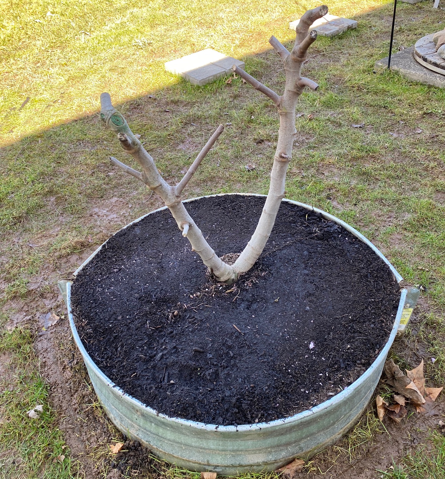 My fig tree whisperer friend John texted with the message that it was time for our fig to move from its first winter shelter inside our second bedroom to the great outdoors of our backyard.