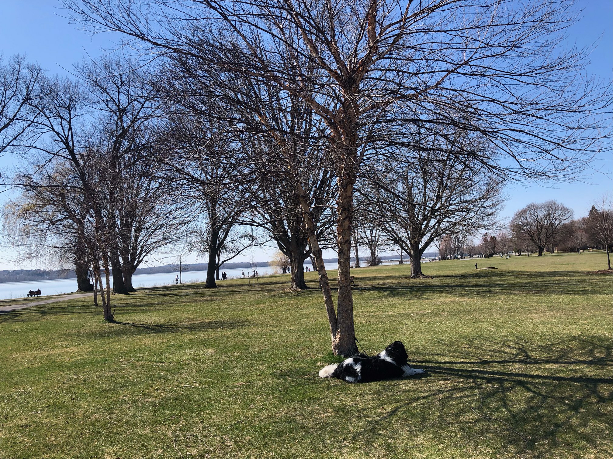 I spied during a recent Onondaga Lake Park loop this big dog lying in wait as its humans went about doing spring things.