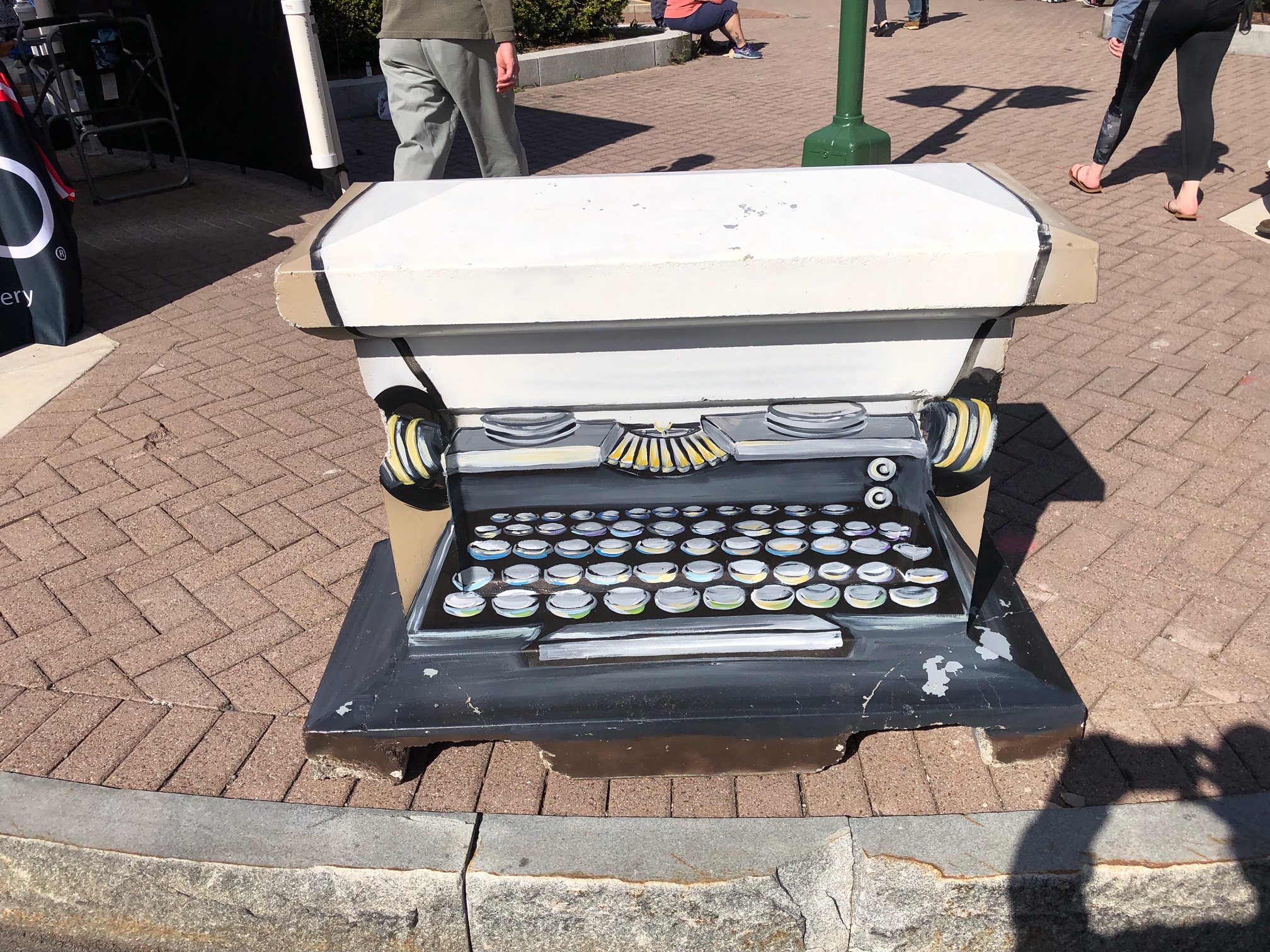 Who, what, where, why and how? I wondered about this eclectic and sturdy piece that sat on one corner of the square. Art motivated from great things that came from a typewriter, my mind mused.
