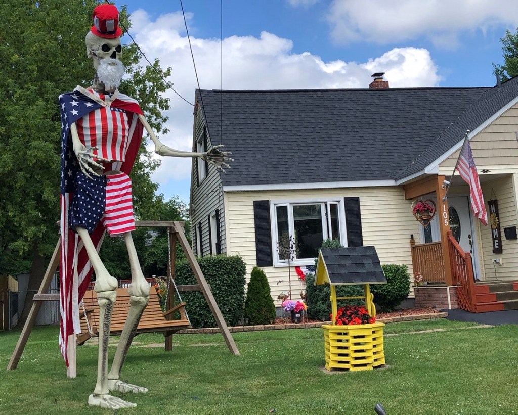 The neighbors around the block from terrific daughter Elisabeth and fantastic fiance George Three prepped their front-yard Skelly well for today.