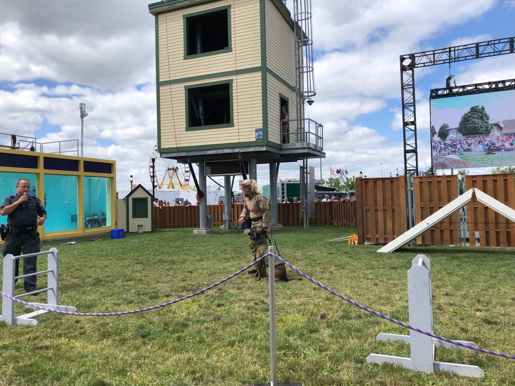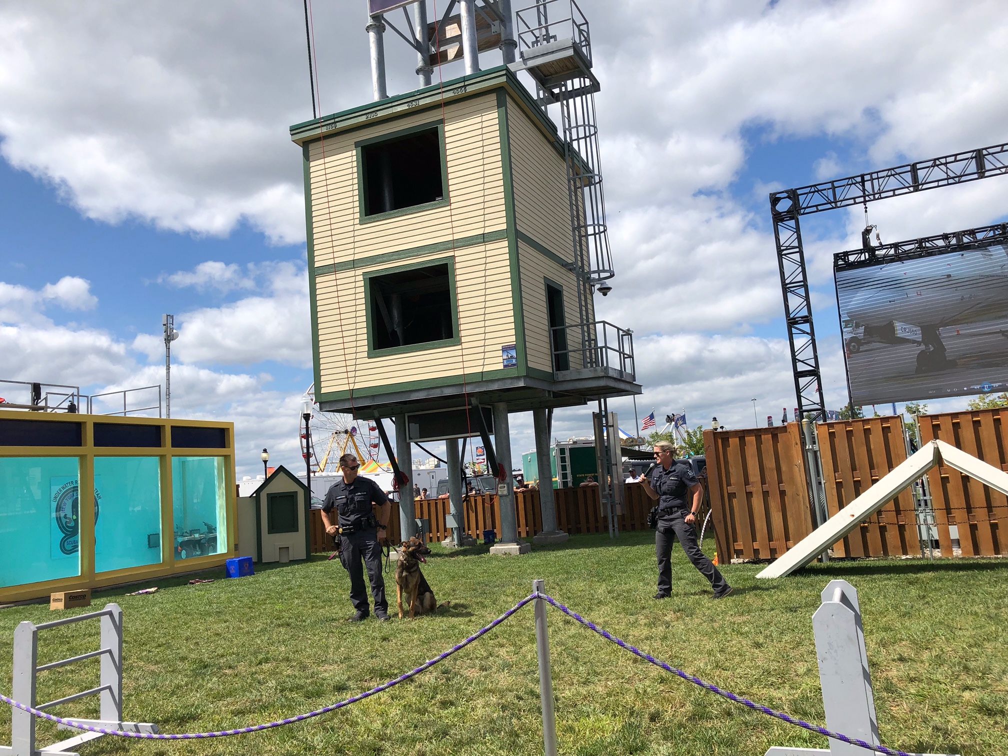 We’re going to the police dog show at 1:15, reported terrific daughter Elisabeth, she and fantastic fiance George Three having arrived at the New York State Fair earlier than my dear wife Karen and I and armed with a good plan.