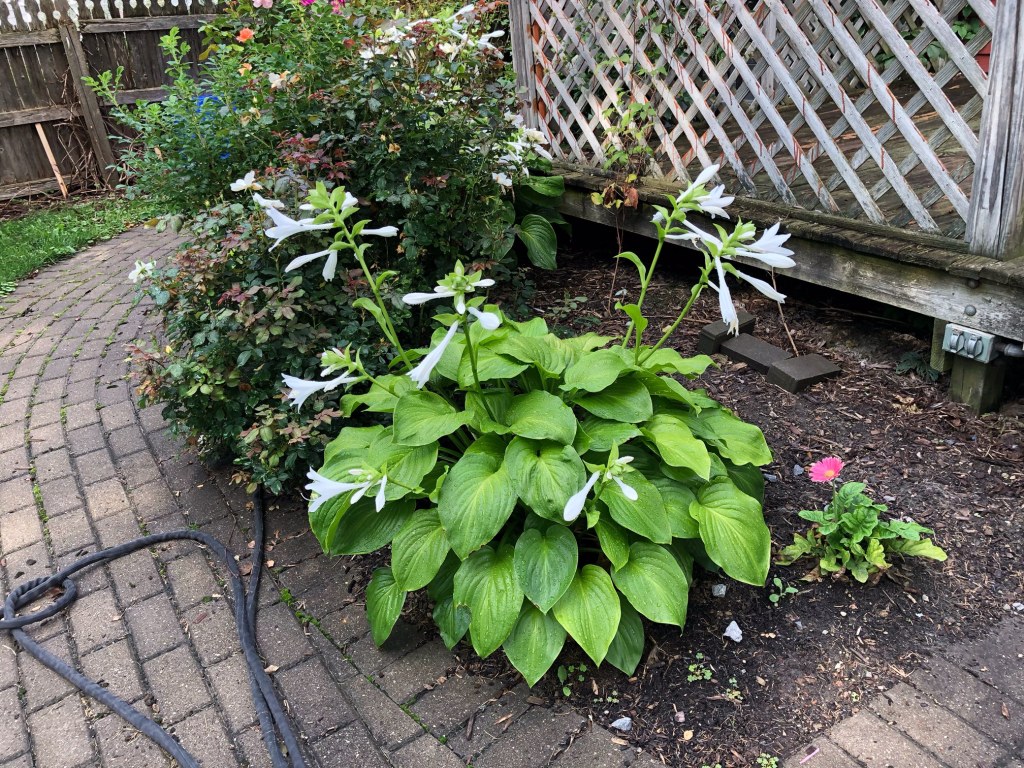 Our quite large hostas plants out back took on their late summer flowers.