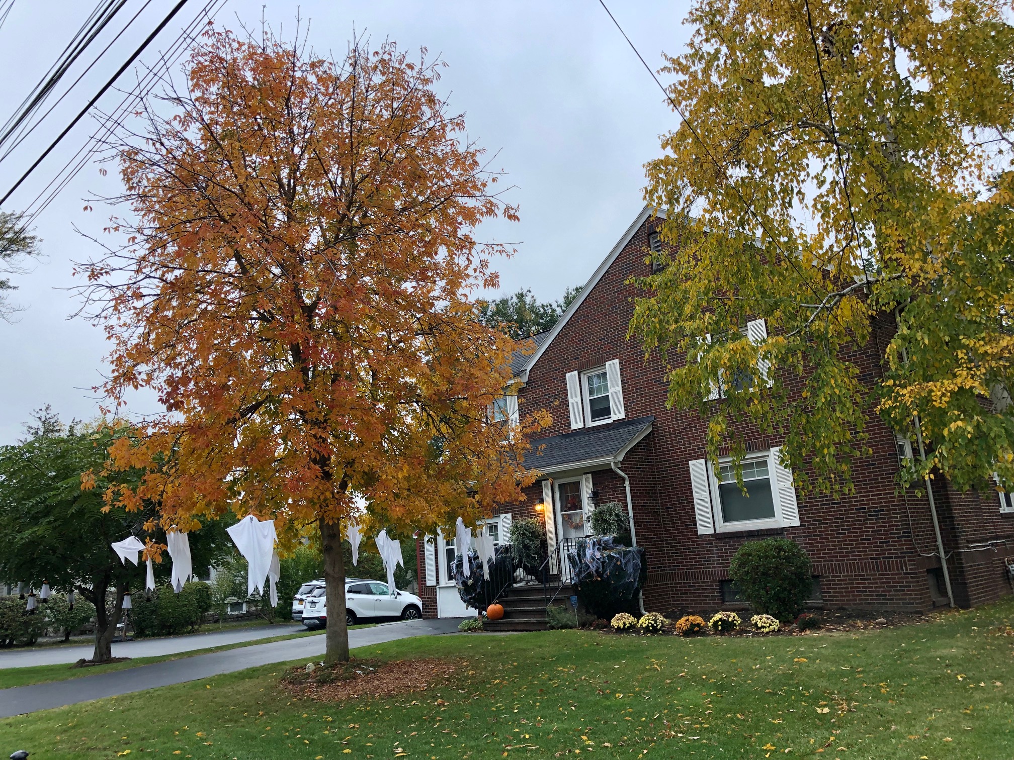 Driving my dear wife Karen to the eye center for her morning shift Tuesday, retired-guy-I spotted some changing-leave brightness to my left on the neighboring block.