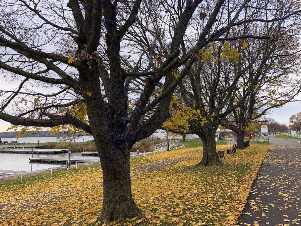 Down come the leaves in time for Lights on the Lake in Onondaga Lake Park, retired-guy-I notes on a photo-taking binge.