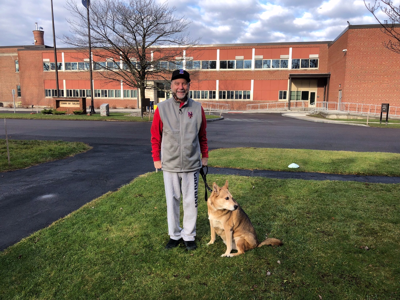 It was warm enough in this in-between week for the cherished rescue mutt and I to take a little walk along the block each day. My dear wife Karen honored my request to capture us on our front lawn so I could show off the awesome new vest she gave me for Christmas. Let’s Go, Mets!